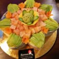 WRAP SALMON, INSIDE AVO, CRAB TOPPING MANGO, AVO SAUCE ALL PURPOSE