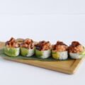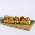 Salmon Tempura, avocado, avocado wrap, teryaki sauce, crispy, tobiko
