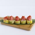 Wrap salmon inside AVO, Tempura Spicy Sauce Tobiko